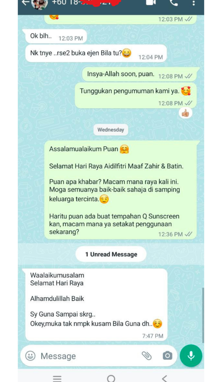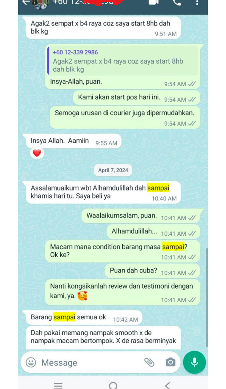 *PENAFIAN: Keberkesanan produk ini bergantung kepada kesesuaian individu. Setiap hasil dari penggunaan adalah berbeza bagi setiap individu. Produk ini akan memberi kesan terbaik sekiranya pengguna mengamalkan dengan cara betul berdasarkan banyak testimoni yang diperolehi. Kita berikhtiar, tuhan yang menyembuhkan.